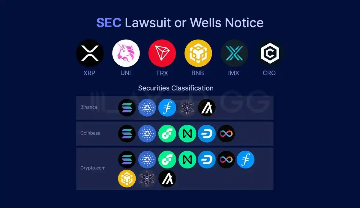 · 与 SEC 有诉讼纠纷或收到 Wells 通知的加密货币可能会引发关注。