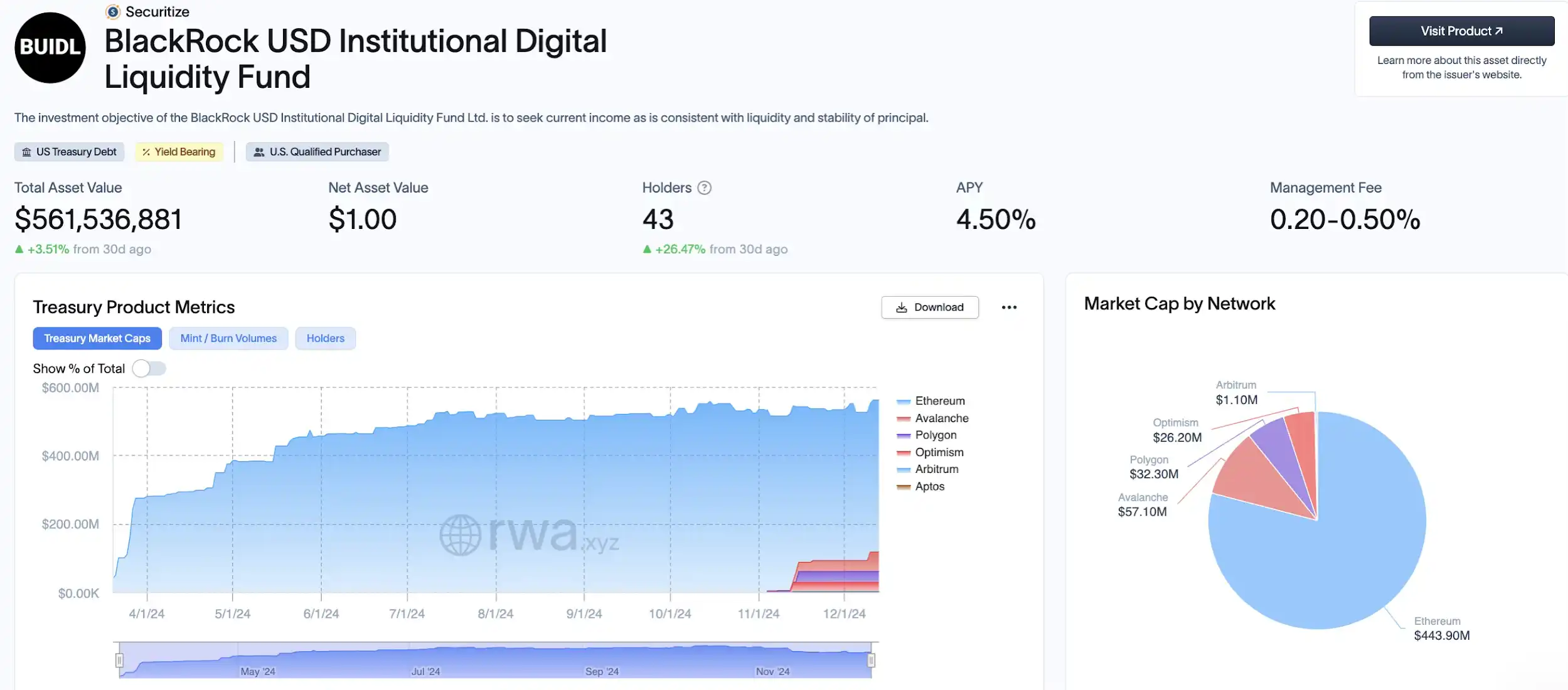Securitize 是一家专注于在区块链上进行基金发行与投资的创新平台。其与贝莱德(BlackRock)的合作始于在 RWA(现实世界资产)领域的深耕,并为众多大型资产证券化企业提供专业服务,包括代币化证券的发行、管理和交易。通过 Securitize,企业可直接在区块链上发行债券、股票及其他类型的证券,并借助平台提供的全套合规工具,确保所发行的代币化证券严格符合各国的法律与监管要求。