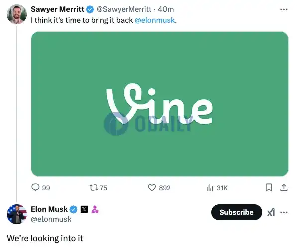 创始人发币速通2亿美元,马斯克旗下短视频Vine卷土重来