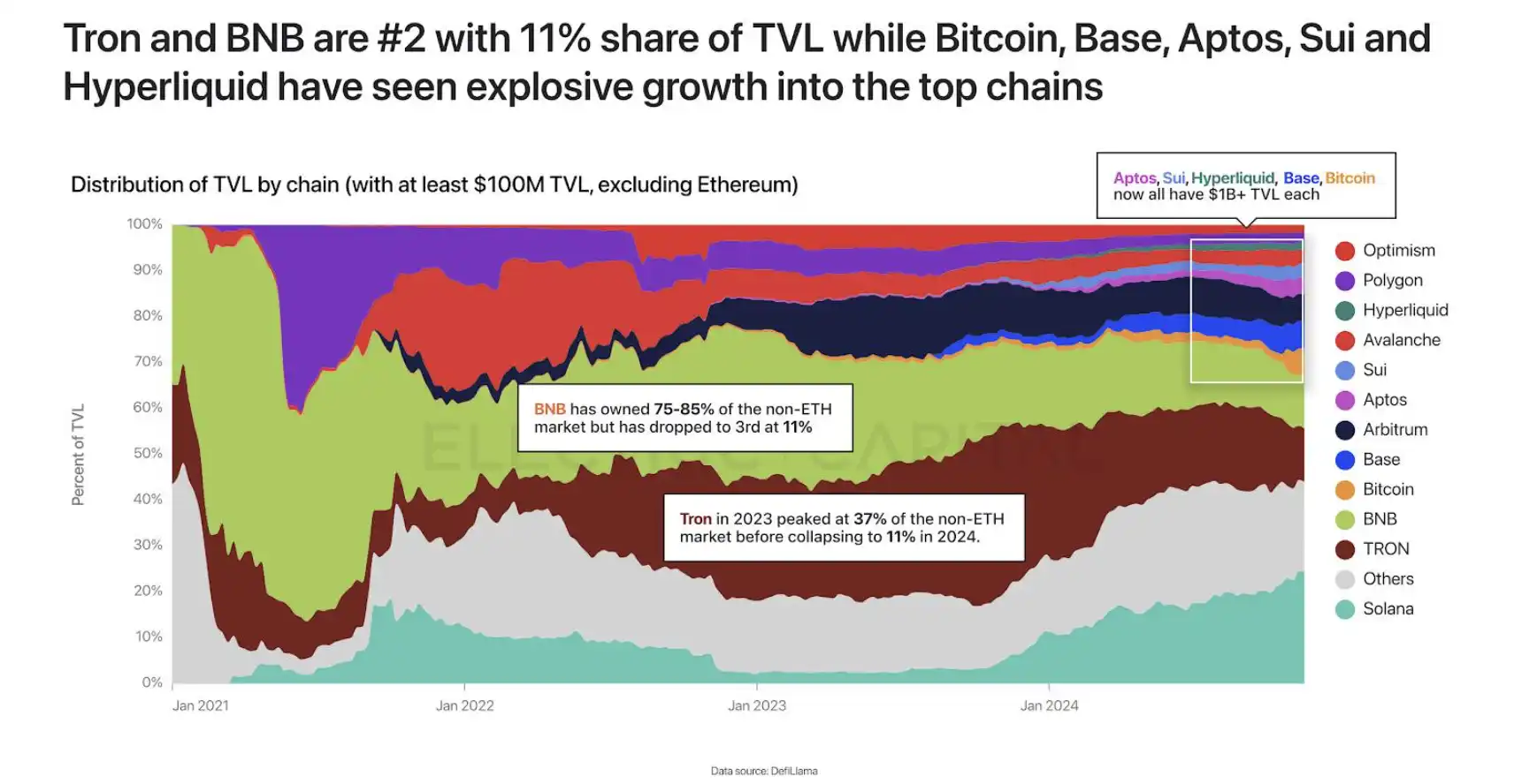 漫长的季节,孤独的旅人只能进入没有框架和规则的西部世界,2021 年开启的公链大战,交易平台也加入其中,但是真正存活下来的,只有 3 个半,BTC/ETH,以及 BNB Chain,当时还叫 BSC,以及半个 Solana,正处于和 ETH 的鏖战中。