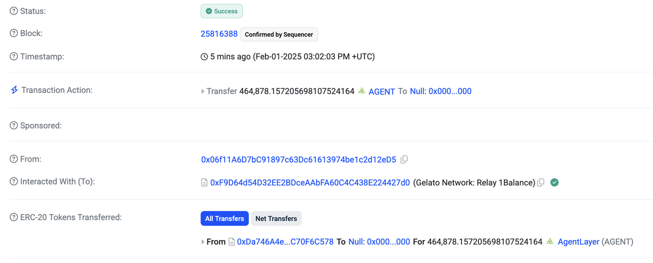 · 累计销毁总量:1,956,343 $AGENT(占总供应量的 0.2%)