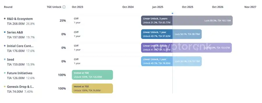 这是关于 TIA 不同轮次和投资者解锁的概览: