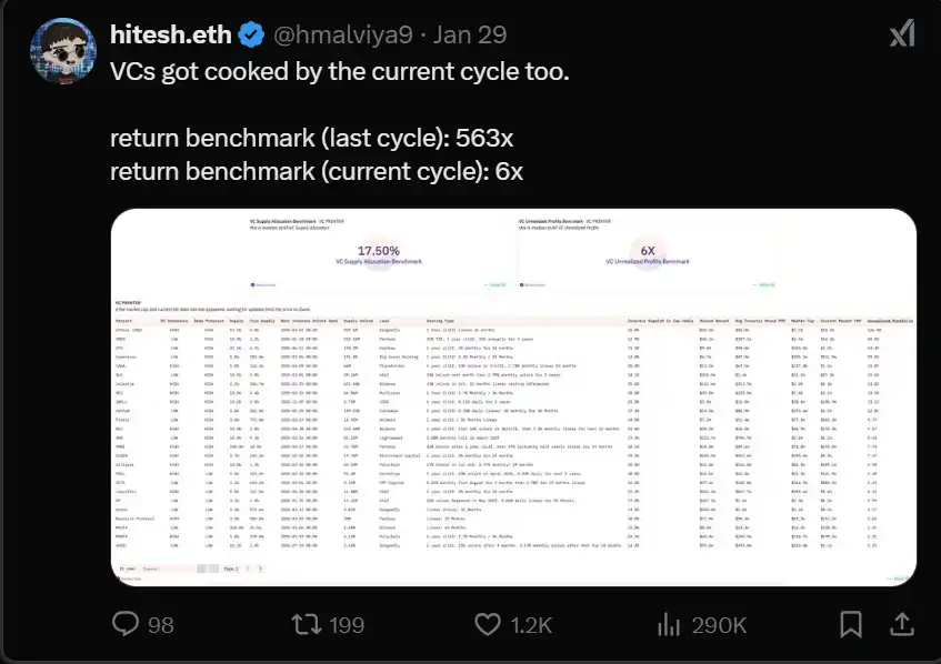 与此同时,所有早期有机会布局的内幕人士也有机会抛售他们的筹码。或许零售投资者最终遭遇的情况甚至比他们在 VC 币种时经历的更糟。