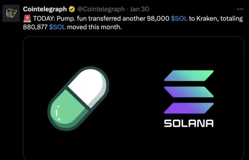 在提到的原因中,Pump.Fun 团队不断将大量费用转移出去。仅在上个月,他们就将超过 880,877 个 SOL 转移到了 Kraken,总金额达到 211,410,480。