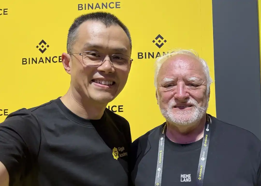 在同年 10 月的 Binance Blockchain Week 上,Harold 原型 Arató 与 Binance 创始人 CZ 的合影被广泛传播。Memeland 代币 MEME 早已上线 Binance,合照的发生少不了 Memeland 在背后推动的努力。