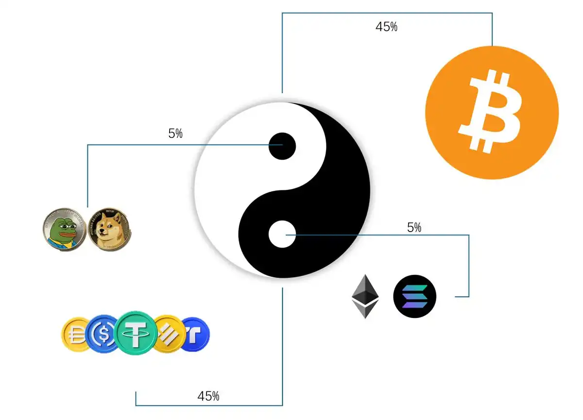 当然,你可以再切出 5% 配一点你真心信仰的山寨币,无论是 ETH、SOL、DOGE 或者任何你的信仰币都可以。再切出 5% 的资金没事去 PVP 两把,赢了潇洒一次,输了就当消费,保持手感,岂不美哉?