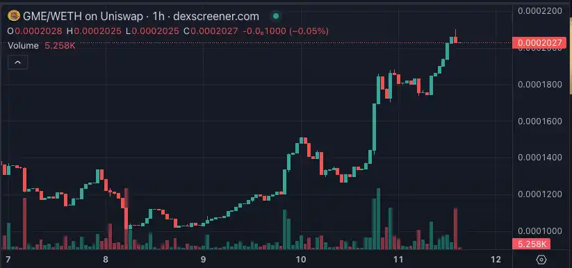 GameStop 同名迷因币 $GME 近 24 小时暴涨 51%