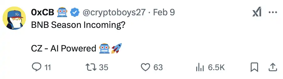 「BNB Season 要来了?CZ - AI 加持」——@cryptoboys27