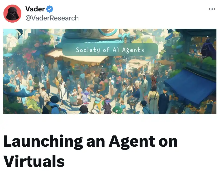 Vader 发布了一篇关于在 Virtuals 上部署智能体的优秀文章,从初始设置、绑定、到扩展的全过程,如果你考虑部署自己的智能体,值得一读。