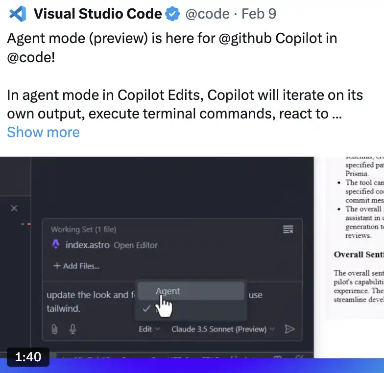 AI 智能体编码和工程支持已逐步成为现实,Github Co-pilot 现已推出智能体版本。