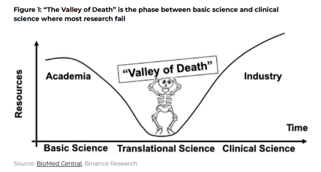 (图 1:「死亡之谷」是基础科学和临床科学之间的大多数研究失败的阶段)