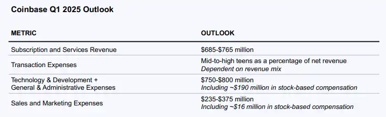 本季度,其订阅和服务业务(包括稳定币、质押、托管和 Coinbase One 产品)的收入预计在 6.85 亿美元至 7.65 亿美元之间。