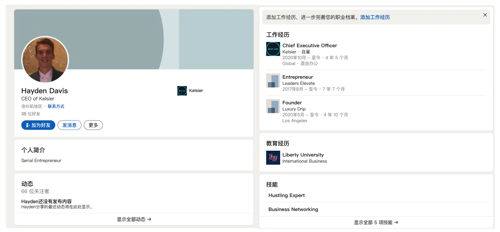 尽管 Hayden 自称为「连续创业者」,但他在互联网上名不见经传,LinkedIn 账户仅有 35 个联系人。