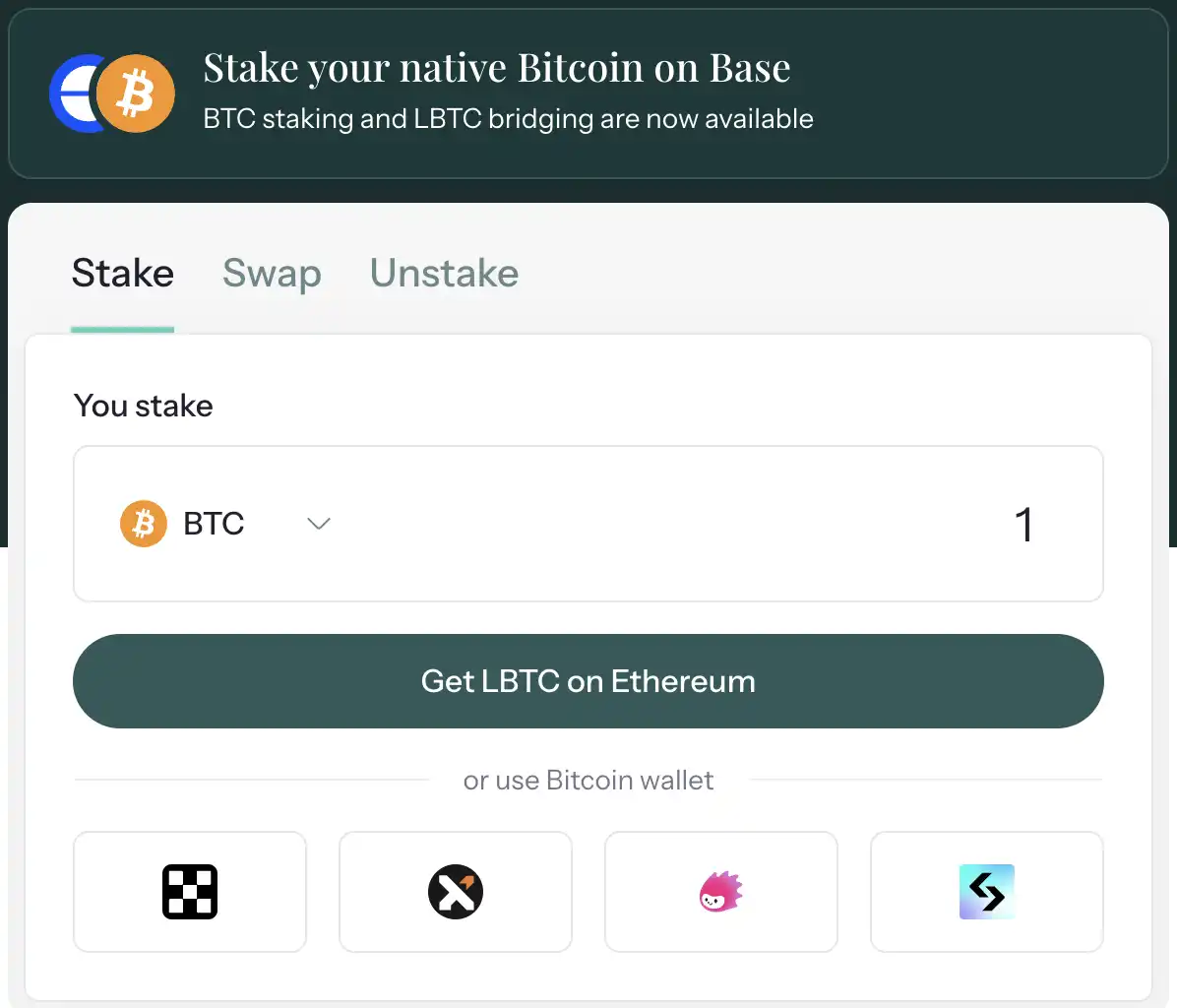 进攻的起始点是 Lombard Finance,Lombard 是专注于比特币的 DeFi 项目,最著名的产品是推出了 LBTC,一种流动质押的比特币版本。用户通过 Lombard 质押在 Ethereum, Base 或 BNB 上的 BTC,用户会收到 1:1 的「LBTC」。