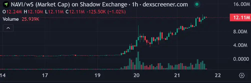 Navigator Exchange 是 Sonic 生态系统中的去中心化流动性市场,覆盖加密货币、外汇、金属等多种资产。其上总交易量 1.29 亿美元,TVL991 万美元,流动性池子中提供 240% 的 APR,并以$S 代币形式奖励,是 Sonic 上排名第一的 Perp DEX。其代币 NAVI 市值从 19 日开始一路走高,3 日内上涨幅度高达 10 倍,目前市值为 12.11M 美元。