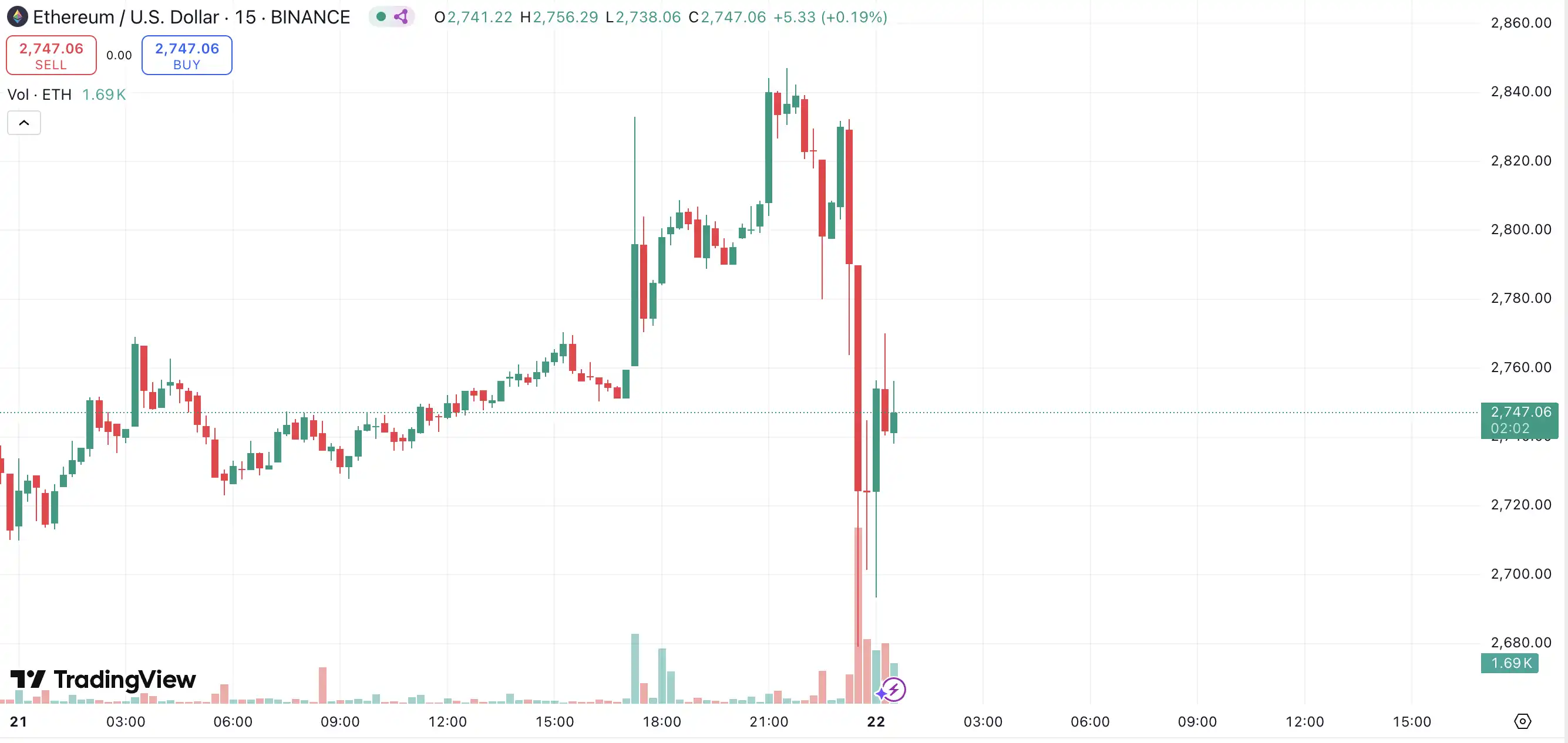黑客 Bybit 被盗消息发酵后,ETH 短短跌至 2600 美元区间。