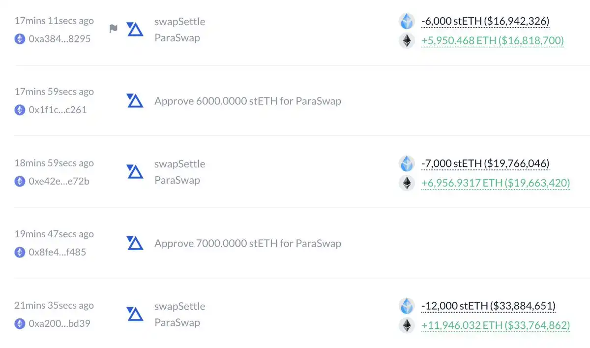 「目前该地址正在使用 4 种不同的 DEX,如果他们只是将 LSD 换成原生 ETH,交易执行效果会很糟糕(磨损较大)。这种规模通常会通过场外交易进行,因此这很不寻常。」