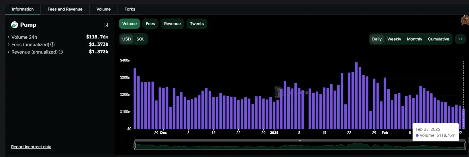 按照 0.25% 的手续费计算,Pump.fun 每日可直接获得 1.25 万美元 的收入。