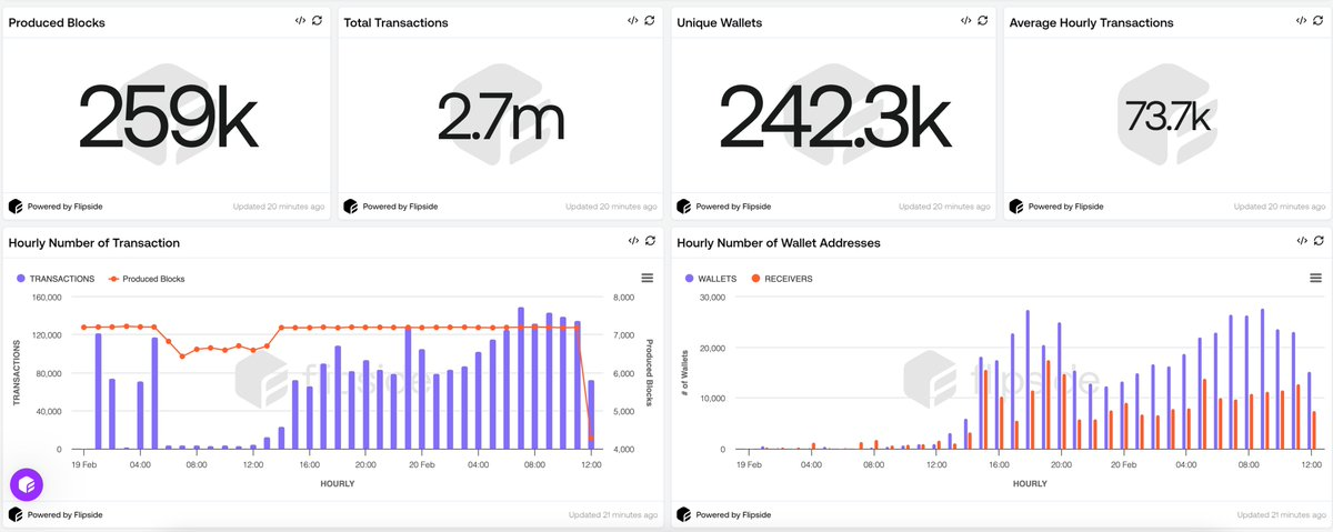 截至目前,该网络已成功处理了近 270 万笔交易,覆盖了 242,300 个独立地址,交易成功率高达 98%,区块生成时间仅为 0.5 秒。