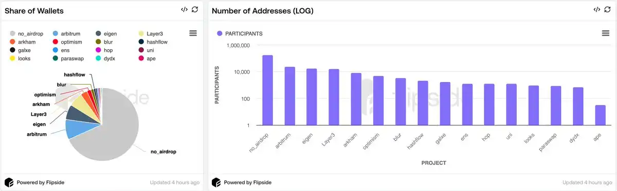 其中,Arbitrum、Eigen 和 Layer3 的空投地址占据了最大的比例。