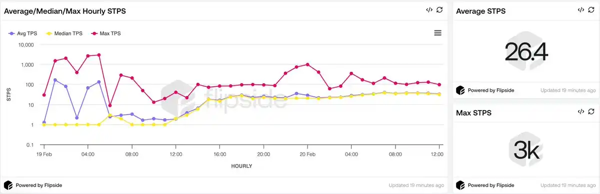 在上线后的短短两小时内,Monad 的每秒交易数(STPS)平均达到了 3000 的峰值。