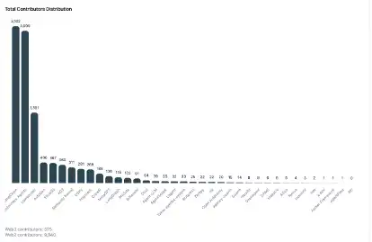 总的而言,Web2 项目在贡献者数量和代码提交频率上明显领先,显示出其成熟且稳定的生态系统。庞大的开发者基础和持续的技术创新,使 Web2 项目在市场中保持强劲的竞争力。相比之下,Web3 项目尽管贡献者数量较少,但一些项目在代码提交频率上的表现突出,表明其拥有稳定的核心开发团队,并能持续推动项目发展。Web3 生态系统虽然目前较为初步,但其潜力不可小觑,逐步形成的开发者社区和用户基础为未来的成长奠定了坚实的基础。