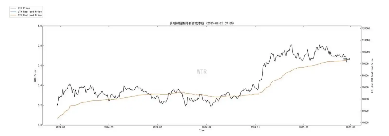 当前价位链上新累积筹码很少,短期持有者成本线也在 92K 附近停滞不前,表明当前市场虽然没有恐慌情绪,但短期市场需求/积极情绪已经进⼊到极低状态。本周预期仍会持续震荡。