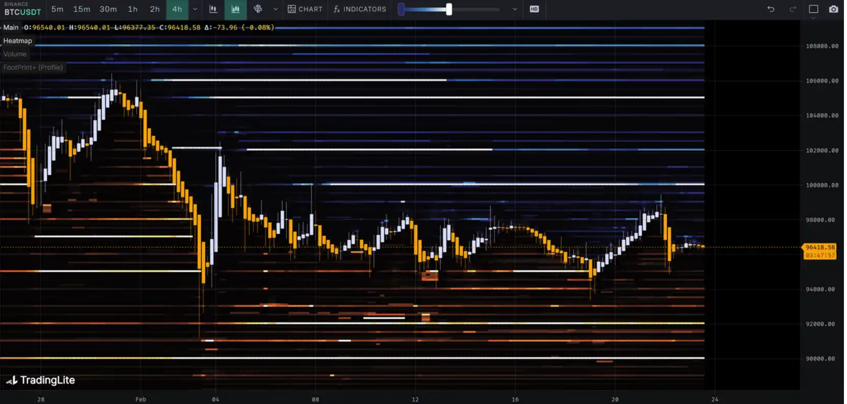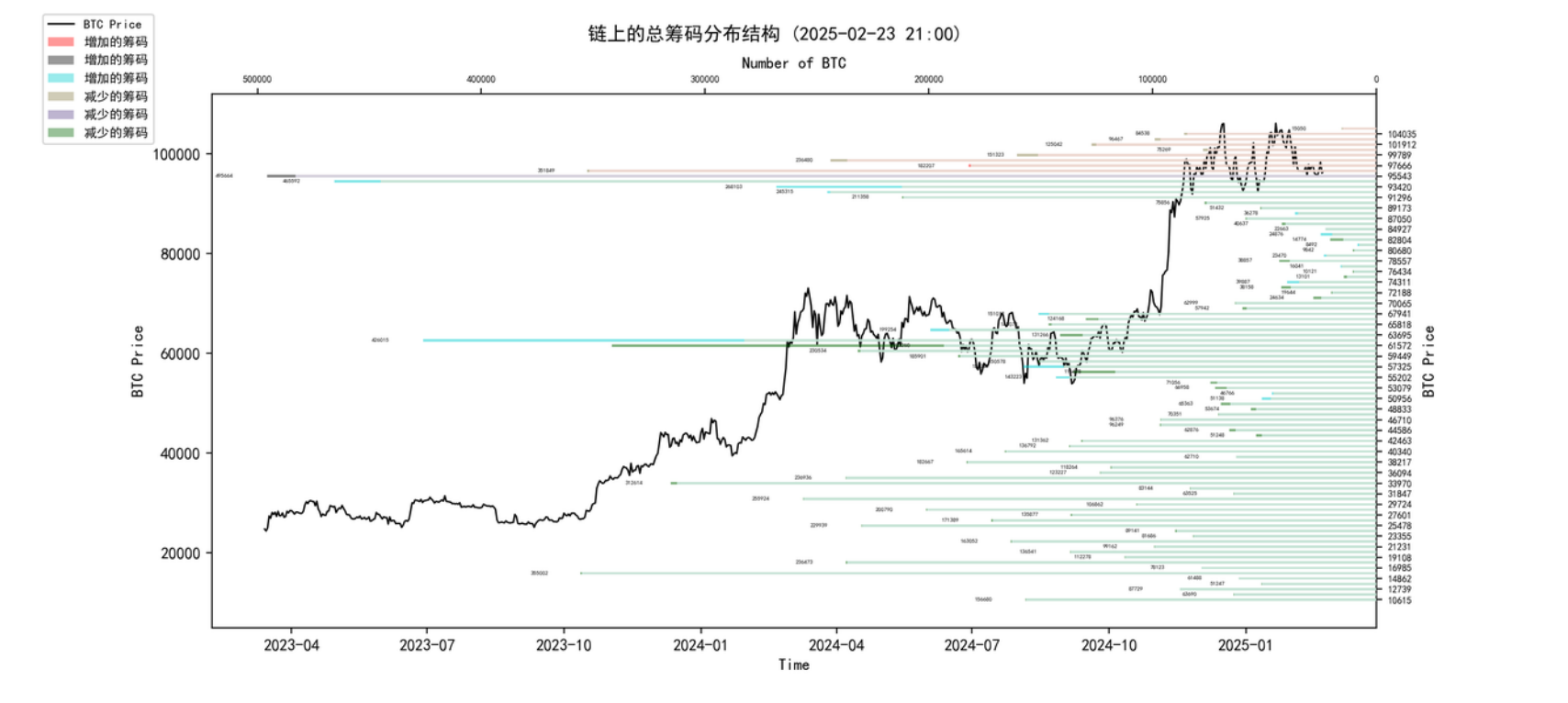 观察筹码分布图,在约 95000 附近有⼤量筹码成交,将有⼀定的⽀撑或压⼒。