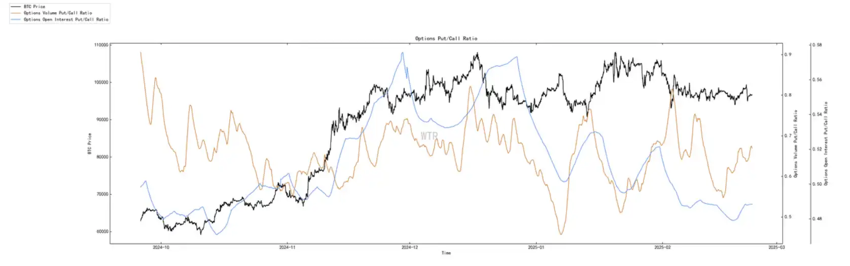 看跌期权⽐例处于低位,交易量处于低位。