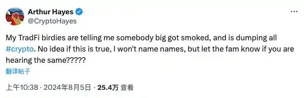 作为比 SBF 更早出现的初代加密之王,BitMEX 联创 Arthur Hayes 在社交媒体上发文表示,通过传统金融领域的渠道,他得知有某个「大玩家」正在清仓加密资产。