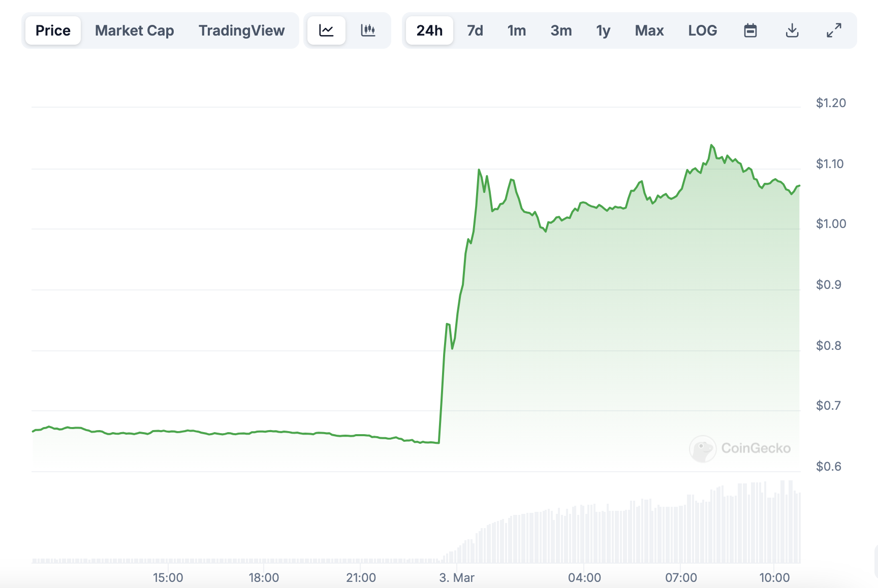 受此消息刺激,加密市场一夜之间「满血复活」。其中,Cardano 的 ADA 表现尤为抢眼,CoinGecko 数据显示,其 24 小时内最高涨幅超 78.1%,直接霸榜热搜。然而,市场情绪高涨之余,也不乏质疑声:Cardano 的技术实力和生态发展相比其他入选资产略显逊色,凭何被精选为美国储备资产?