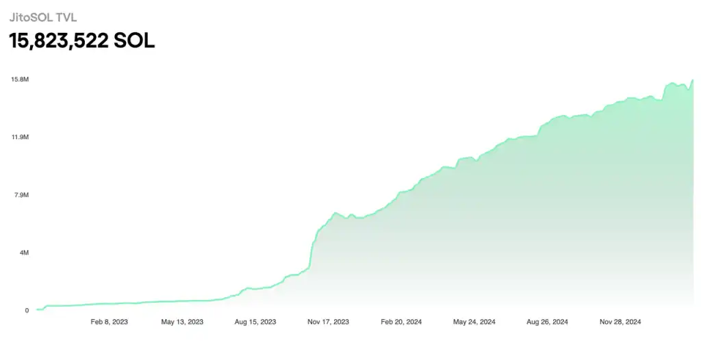 目前,Jito 质押资产规模(流动性质押)超过 25 亿美金