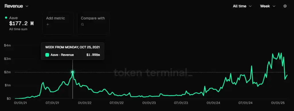 Aave 的协议收入,数据来源:Tokenterminal