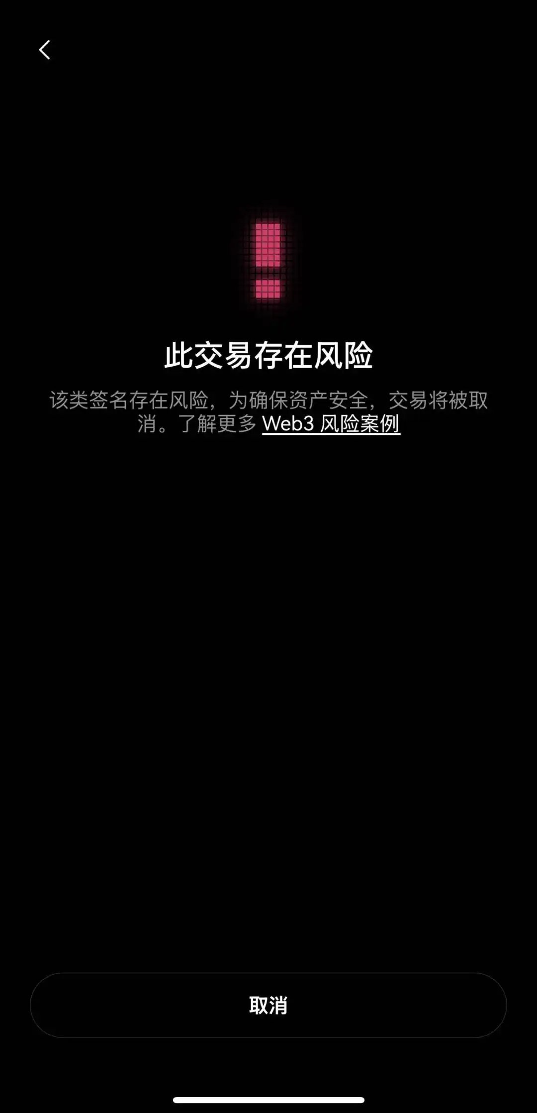 ETHSign 是一种常用于以太坊授权或交易确认的签名方式。然而,如果签名内容被恶意篡改或利用,我们可能会无意间签署不安全的交易,从而导致资产损失。为了避免此类风险,OKX Web3 钱包会在用户进行签名操作时,及时发出风险提示,帮助用户识别签名内容的潜在威胁,确保每次操作的安全性。