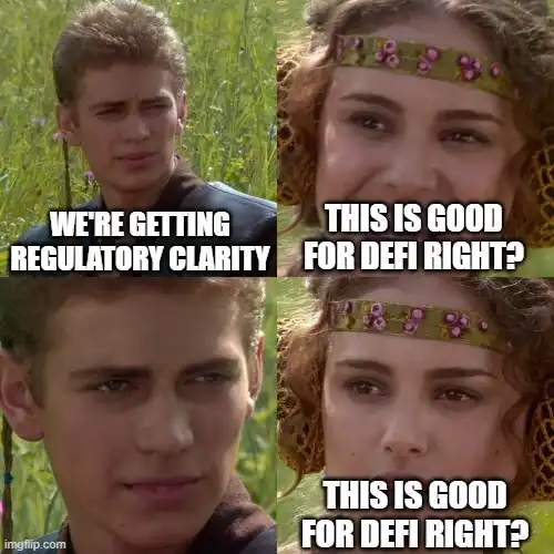 当前行业处于监管尚未落地但即将到来的过渡期。未来,流动资金可能会转向合规的公开市场股票,而不是代币资产。此外,许多链上金融产品可能需要身份验证才能吸引机构客户,导致链上金融市场分裂为灰色/黑市市场和合规市场。