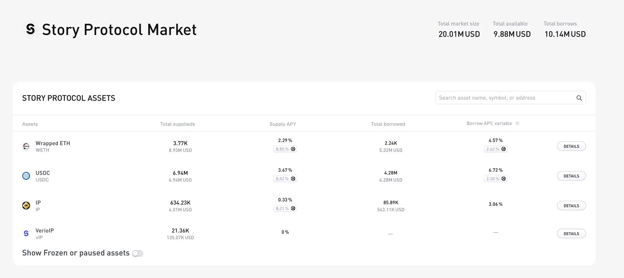 Unleash Protocol 是分叉自 AAVE V3,它是第一个撬动了 IP 的初始杠杆的借贷协议。现有的借贷品类相对简单,包括 WETH,USDC,IP 等三种资产。目前 Story Foundation 还推出了 Unleash Protocol 的流动性激励计划,通过借贷可以获得 WIP 作为奖励年化的部分。