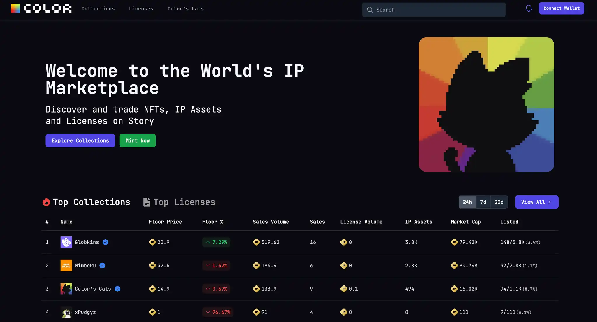 Color / OKX IP Market:作为 Story Protocol 生态的主要交易平台,支持 IP 资产碎片化交易(如某 IP 的 10% 使用权代币化)。