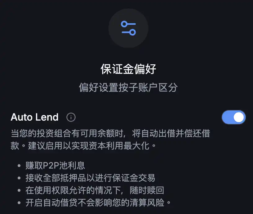 Backpack 则用 Auto Lend(自动借出)功能给出了更加简洁省心的解决方案:只要你把资产放在账户里,系统就会帮你自动出借,借款方一旦还款,你的利息也会实时滚入可用余额。当然,借贷这件事对于一些心思更细腻的交易员来说,也许还会想要自己调整利率或抵押率,不过至少 Backpack 提供了一个「懒人式」的选项,让那些不想费神管理闲置资金的人也能安稳拿利息。