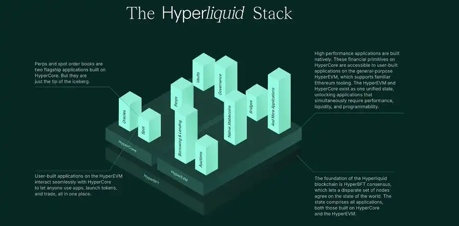 从永续合约到现货交易,Hyperliquid 的所有产品均建立在其定制区块链——Hyperliquid Layer1 之上。2025 年 2 月 18 日,HyperEVM 已正式上线主网。