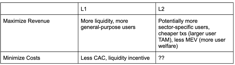 这意味着,在 L1 生态中,由于验证者盈利压力,减少通胀或调整费用分配存在天花板,而 L2 无需受此约束,因此能够更自由地探索 优化 dApp 收益的策略。