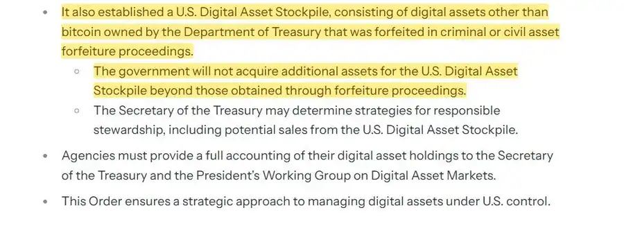 目前对山寨币缺乏明确性导致了市场猜测和不稳定,大卫·萨克斯宣布将在比特币法案的同时创建一个数字资产储备,该储备将由通过合法没收获得的非比特币加密资产组成,该立法严格禁止政府收购任何超出没收案件范围的资产