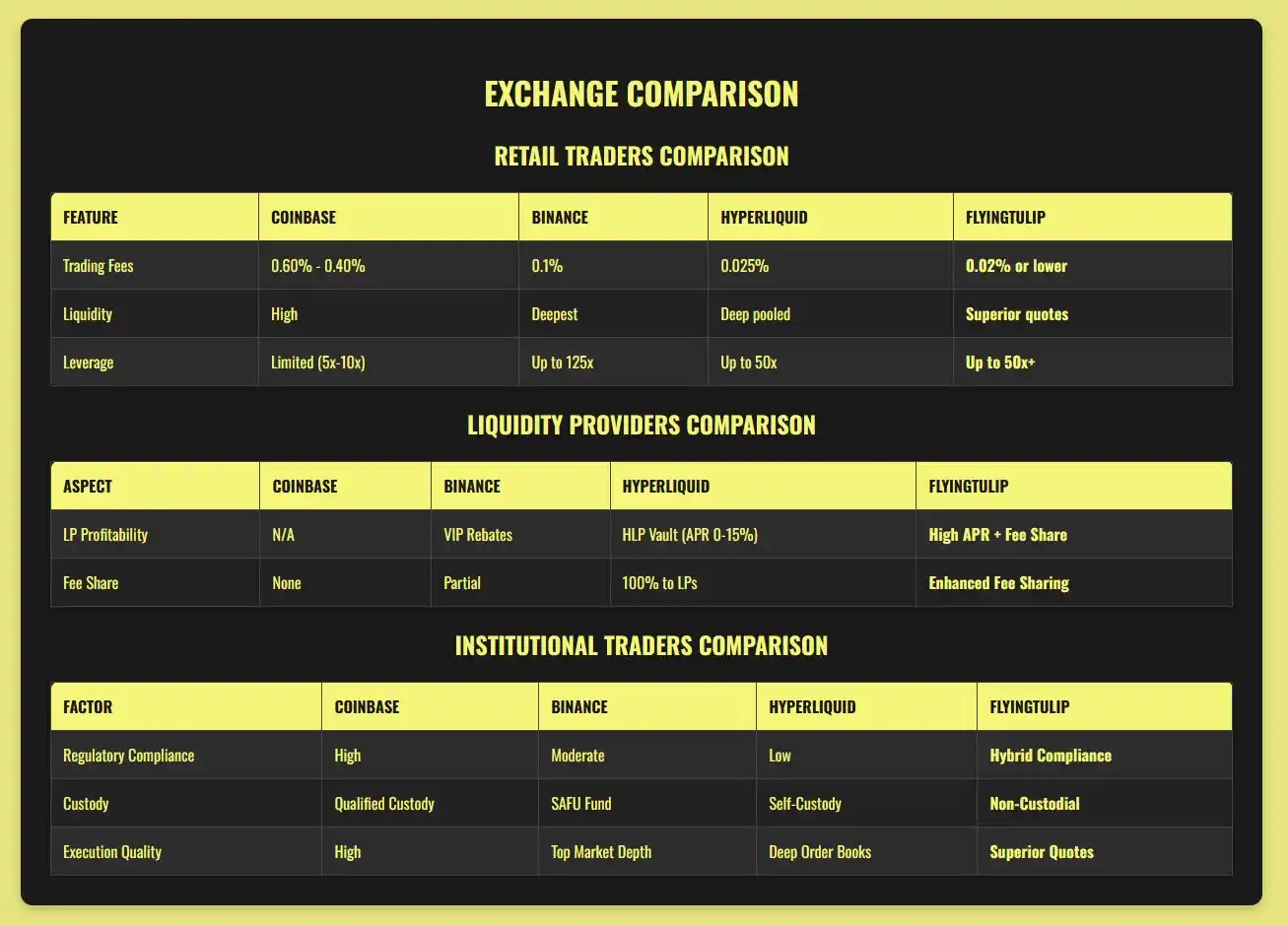 而对于交易者、LP 池提供者以及机构交易者官方分别列举了几点并与市面上最顶级的同类功能 CEX 和 DEX 做了对比,对于普通交易者,它能提供更低的交易费用、更优的流动性报价以及更高的杠杆「宣称高达 1000X」,对于流动性提供者,则是因为其流动性的多用途「同时可以赚取交易费用、借贷费用和期权费用」,而对于机构交易者来说,该产品采用混合合规「与合规工具完全集成,包括 OFAC 筛选、税务申报和钱包报告」,并且采用"非托管钱包"的形式降低信用成本。。