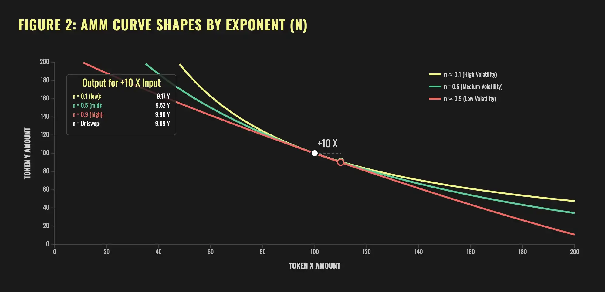 而 FlyingTulip 创新的动态 AMM 会根据市场波动率自动调整曲线形状,在低波动市场时曲线接近「X+Y=K」的形状「恒定和曲线」,而在高波动市场,曲线接近「X*Y=K」的形状「恒定乘积曲线」。系统通过预言机不断监测资产的实时波动率「rVOL」和隐含波动率「IV」。在波动率低时,流动性自动集中在当前价格附近「类似于 LP 在 Uniswap V3 中手动集中流动性」。波动率高时,流动性自动分散开来,以应对可能的大幅价格变动。