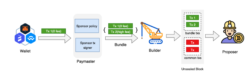 交易完成后,Paymaster 管理器会更新赞助方的账户,并扣除相应的 Gas 费用。整个流程依托 BEP322 的 Proposer-Builder 分离(PBS)架构,确保 Gas 赞助的高效性和安全性,为用户提供更流畅的区块链交互体验。