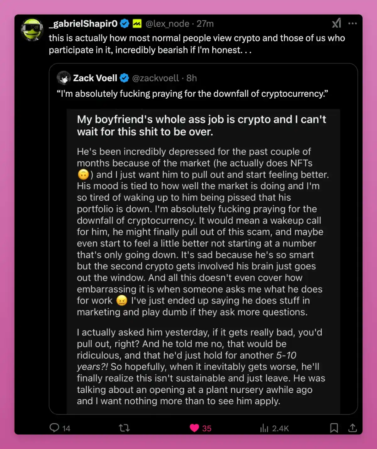 说起来容易做起来难,但必须从内部开始:即使是加密原住民也对加密货币失去希望。