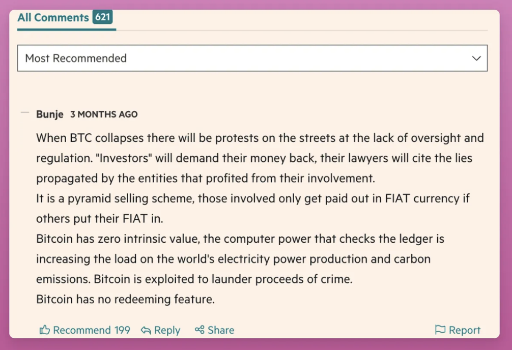 然而,我认为加密货币在强调我们的使命、为什么需要加密货币,以及为什么通过加密货币致富并不邪恶方面做得非常糟糕。以下是《金融时报》上的热门评论,总结了加密怀疑者的观点: