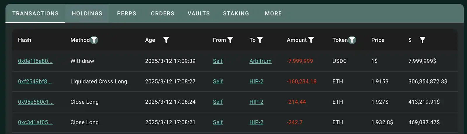 3 月 12 日,该巨鲸再次以 50 倍开多 16 万枚 ETH,提取 800 万美元资金后主动爆仓,最终获利约 180 万美元,而 Hyperliquid 交易平台则因此损失 400 万美元。
