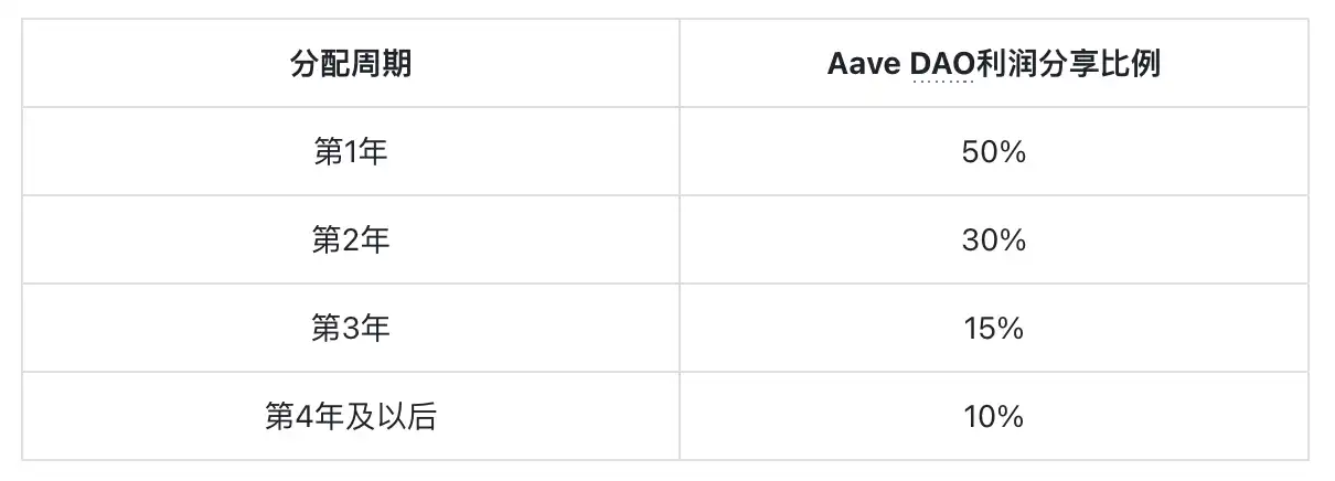 Horizon 的部分利润将分配给 Aave DAO,如下表所示。