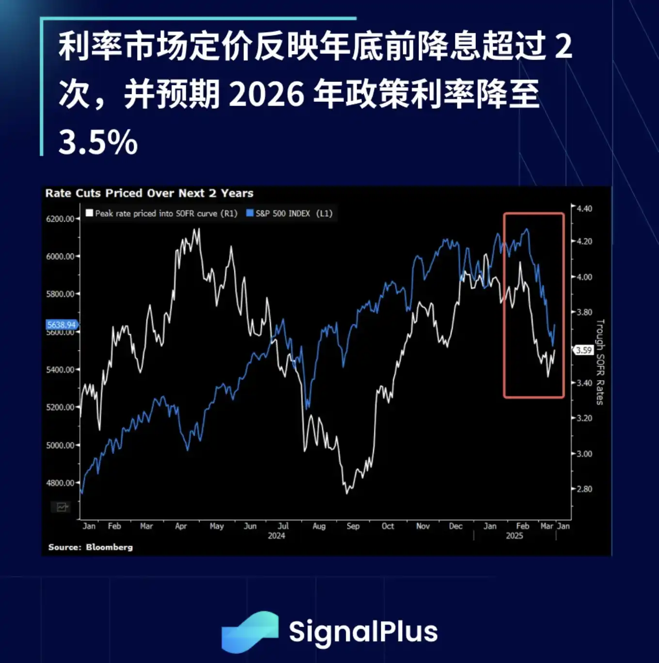 另一方面,除了黄金之外,(短期)固定收益是这波经济增长恐慌的另一主要受益者。期货市场再次重新定价,预测年底前降息超过 2 次,而隔夜利率将在明年年底前降至 3.5% 左右。