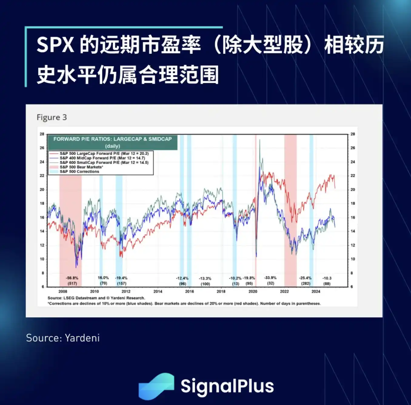 与历史平均相比,主要大型股之外的股票估值仍然相对受控,而经济硬数据的表现可能会优于快速恶化的软数据,因此市场普遍认为,在我们应对关税不确定性的同时,这仍然是一个「逢低买入」的市场。